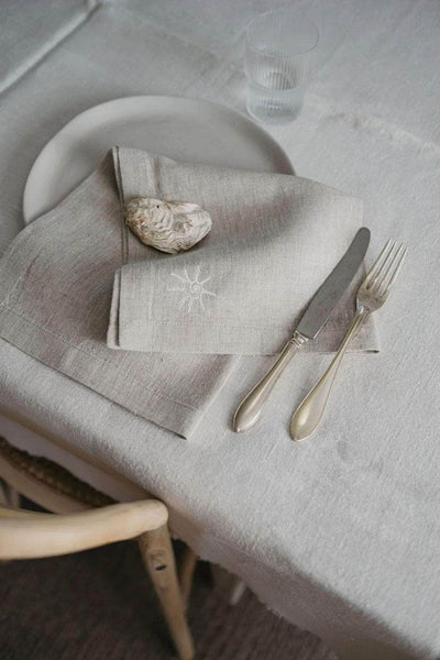 These shell embroidered linen napkins are made from premium linen in Europe. They come in a set of 4 with each napkin featuring a different shell embroidery.   Size: 45x45cm