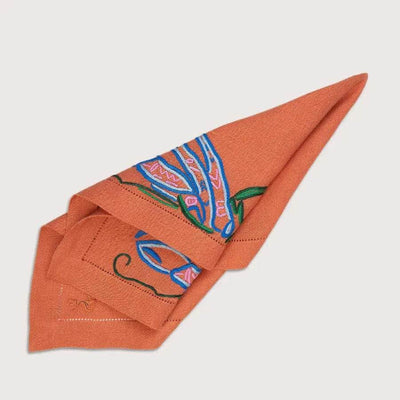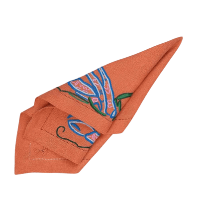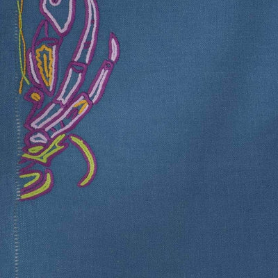 This placemat has a prominent central motif on display. The colourful hand-embroidered placemats create a sophisticated and uniform table-scape, the perfect individual backdrop to any meal. With each motif taking fourteen hours to complete, and each meter of open hem two hours to prepare, the artistry behind each design is significant. Pair with contrasting coloured crockery for a bolder design statement.