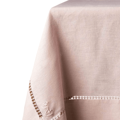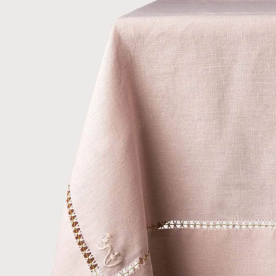Hand-embroidered with open hems and a flower motif, Campante's linen tablecloths provide the perfect backdrop for any setting. With each motif taking fourteen hours to complete, and each meter of open hem two hours to prepare, the artistry behind each design is significant.