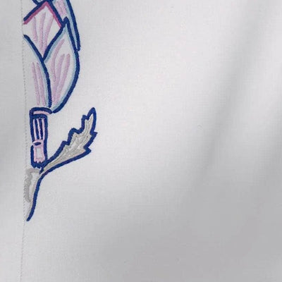 A placemat with the central motif on display, these colourful hand-embroidered placemats create a sophisticated and uniform table-scape, the perfect individual backdrop to any meal. With each artichoke motif taking fourteen hours to complete, and each meter of open hem two hours to prepare, the artistry behind each design is significant.