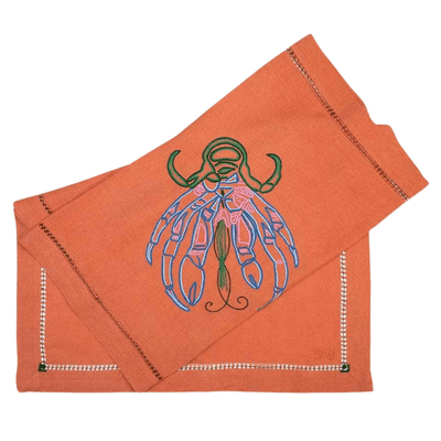The beauty of a runner draws the eye to the centre of the table, which can be adorned with a centrepiece to create a striking statement. With each motif taking fourteen hours to complete, and each meter of open hem two hours to prepare, the artistry behind each design is significant. Place runners across the table to double up as placemats while also protecting the table from hot serving dishes.