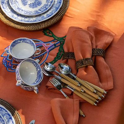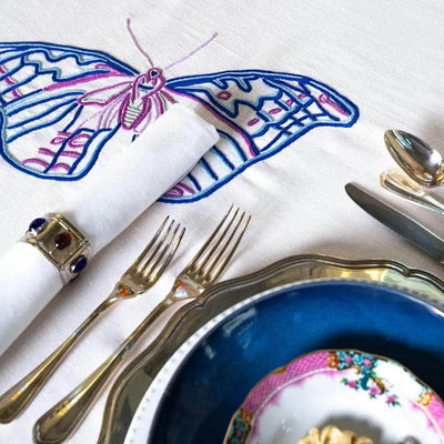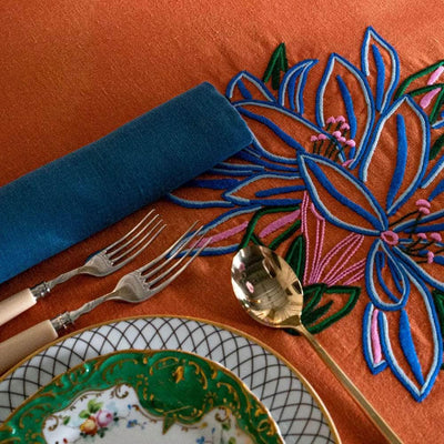 Elevate each mealtime with these delicate linen napkins, each adorned with a hand-stitched border elegantly framing the design. With each meter of open hem taking two hours to prepare, the artistry behind each design is significant.