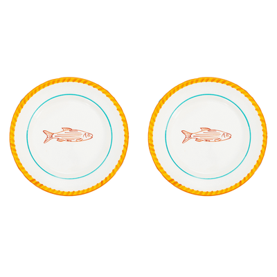 Playful and full of charm, the Gone Fishing dessert plates are a sweet tribute to summer’s carefree spirit. Hand-painted by Colombian artisans, each plate features delicate, whimsical illustrations that evoke sun-drenched coastlines and seaside afternoons.