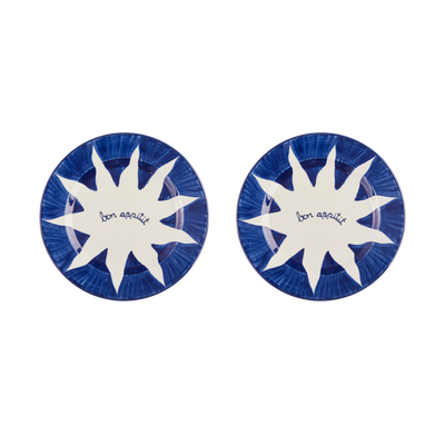 Inspired by the golden glow of the South of France, Casa Hermana’s Soleil dessert plates bring sunshine to the table year-round. Hand-painted in Colombia, this radiant set of two is a warm reminder that summer is always just around the corner.