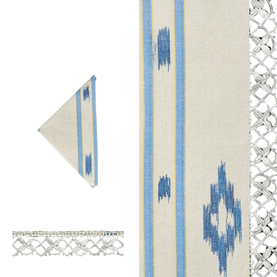 The cocktail napkin with the Moroccan ikat designs, perfect for your informal dinners.