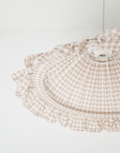 Conical Pendant Light With Ruffle Emilia “Petits Carreaux Beige”