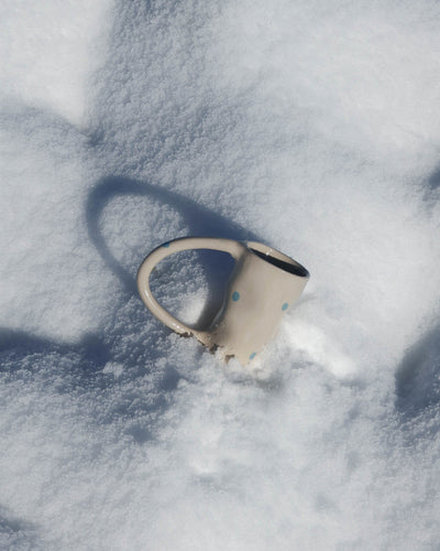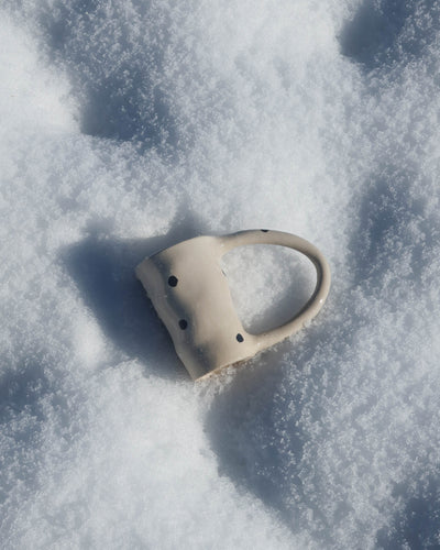 The best-selling Mega Mug, now sprinkled with irregular polka dots—each applied by hand—to bring a touch of playfulness to every coffee or tea break.