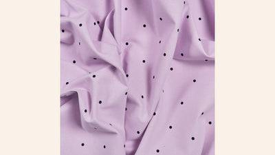 Offered here in Parma Violet - featuring a lavender background with navy contrast dots.