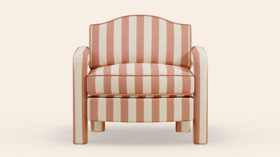 Ceraudo's Elio armchair is inspired by both modern and traditional silhouettes. We wanted to design a shape that exposes the key parts of its structure and provides a simple canvas for the upholstery to do all the talking. The inclusion of a traditional camelback detail also softens the structural aesthetic. The curved lines and soft edges were designed to complement the painterly Orpha print, however the style works equally well with a plain or simple print fabric.