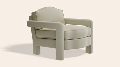 Ceraudo's Elio armchair is inspired by both modern and traditional silhouettes. We wanted to design a shape that exposes the key parts of its structure and provides a simple canvas for the upholstery to do all the talking. The inclusion of a traditional camelback detail also softens the structural aesthetic. The curved lines and soft edges were designed to complement the painterly Orpha print, however the style works equally well with a plain or simple print fabric.