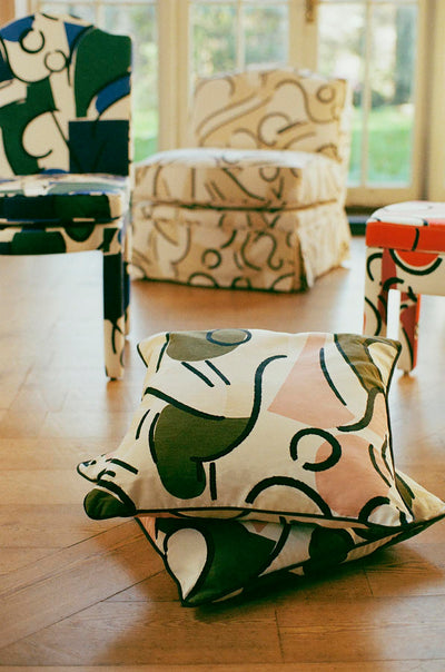 Ceraudo's Elio armchair is inspired by both modern and traditional silhouettes. We wanted to design a shape that exposes the key parts of its structure and provides a simple canvas for the upholstery to do all the talking. The inclusion of a traditional camelback detail also softens the structural aesthetic. The curved lines and soft edges were designed to complement the painterly Orpha print, however the style works equally well with a plain or simple print fabric.