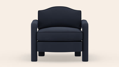Ceraudo's Elio armchair is inspired by both modern and traditional silhouettes. We wanted to design a shape that exposes the key parts of its structure and provides a simple canvas for the upholstery to do all the talking. The inclusion of a traditional camelback detail also softens the structural aesthetic. The curved lines and soft edges were designed to complement the painterly Orpha print, however the style works equally well with a plain or simple print fabric.