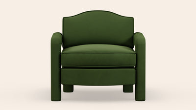 Ceraudo's Elio armchair is inspired by both modern and traditional silhouettes. We wanted to design a shape that exposes the key parts of its structure and provides a simple canvas for the upholstery to do all the talking. The inclusion of a traditional camelback detail also softens the structural aesthetic. The curved lines and soft edges were designed to complement the painterly Orpha print, however the style works equally well with a plain or simple print fabric.