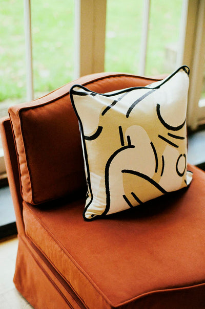 The Felix slipper chair is the versatility hero. It sits just as well in the sitting room as it does in the bedroom or dressing room. The Felix shape is an adaptation of our Elio armchair, but without the exposed arms. Like all the Orpha shapes, the curved details were inspired by the antique camelback settees we have sourced over the years.