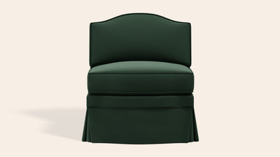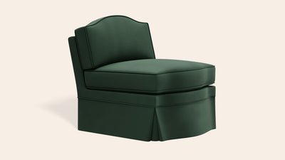 The Felix slipper chair is the versatility hero. It sits just as well in the sitting room as it does in the bedroom or dressing room. The Felix shape is an adaptation of our Elio armchair, but without the exposed arms. Like all the Orpha shapes, the curved details were inspired by the antique camelback settees we have sourced over the years.
