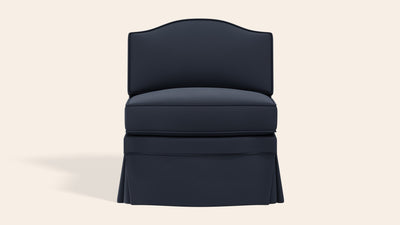 The Felix slipper chair is the versatility hero. It sits just as well in the sitting room as it does in the bedroom or dressing room. The Felix shape is an adaptation of their Elio armchair, but without the exposed arms. Like all the Orpha shapes, the curved details were inspired by the antique camelback settees we have sourced over the years.