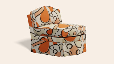 The Felix slipper chair is the versatility hero. It sits just as well in the sitting room as it does in the bedroom or dressing room. The Felix shape is an adaptation of our Elio armchair, but without the exposed arms. Like all the Orpha shapes, the curved details were inspired by the antique camelback settees we have sourced over the years.