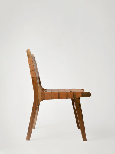 Handcrafted from solid Jabin wood with a leather weave, the FOS Woven Chair from Daniel Orozco Estudio is designed for interior spaces. A blend of artisanal woodwork using national wood and leather craftsmanship, this chair is a testament to the brand's commitment to quality.