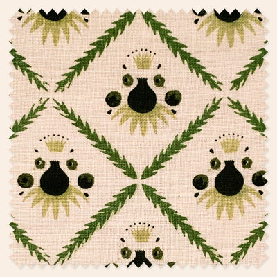 The Sofia here features our embroidered Raphia fabric in Powder, made with 100% cotton.