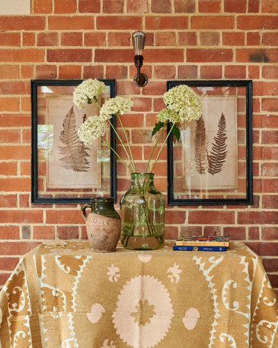 With a history thought to span over 20 years, this Suzani will carry the unique marks of time, you may find subtle imperfections but these are to be celebrated and only enhance their character.
