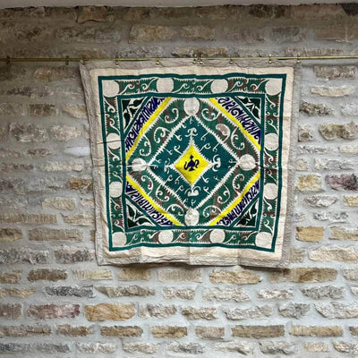 A one-of-a kind hand-embroidered multicoloured textile panel adorned with Flora & Fauna. This mesmerising handmade Suzani with it's vibrant hues and intricate patterns, was sourced personally by Chloe from the Far East.