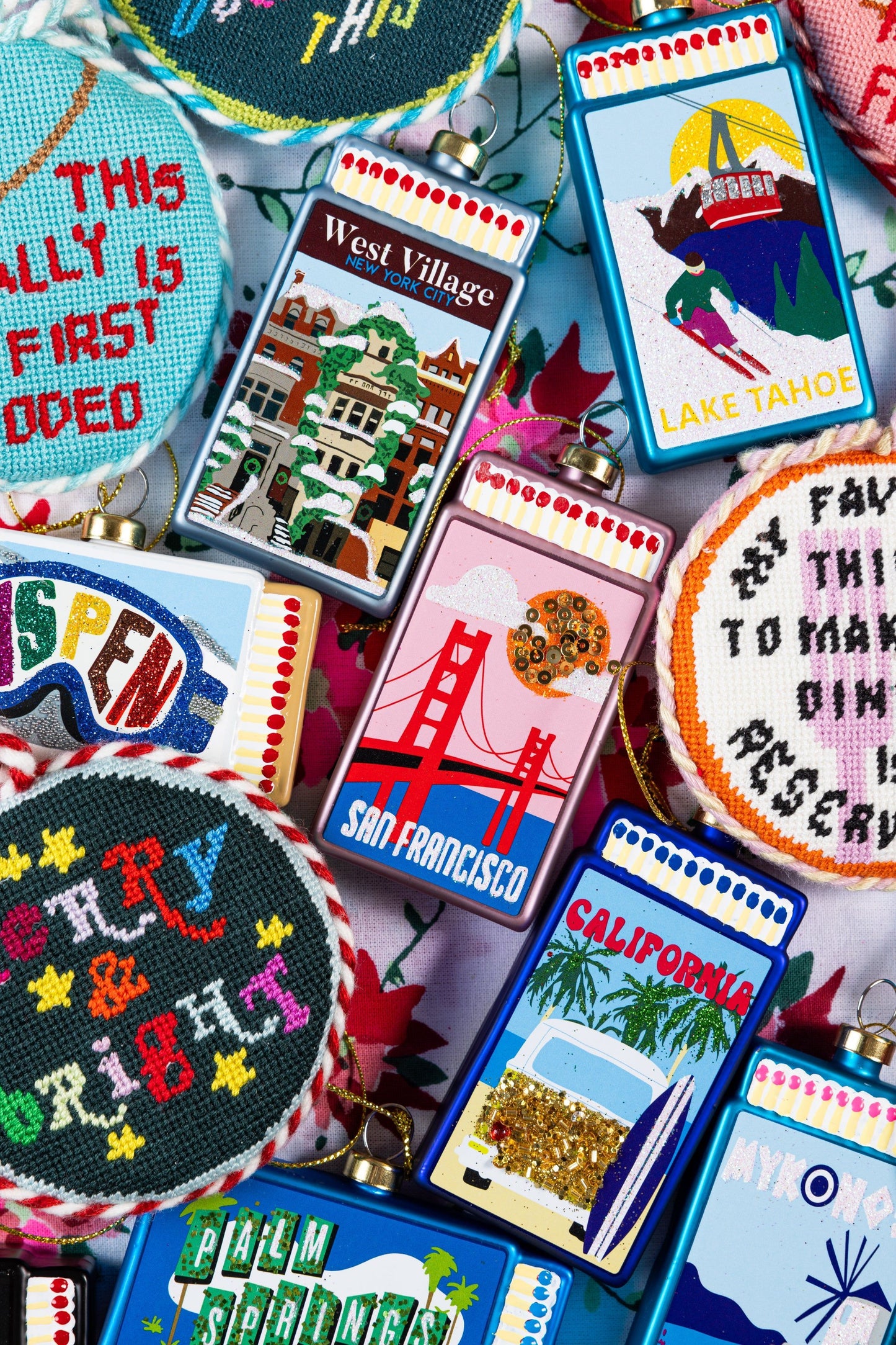 Take your holiday decor from trad to rad with Furbish's curated assortment of festive AF needlepoint pillows, ornaments, tree toppers, stockings, and tree skirts.