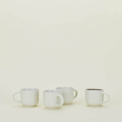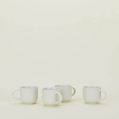 Coming in a set of 4, these mugs are pragmatic and elegant; that HNY sweet spot. Sitting comfortably in the hand and makes a just-right morning companion, these mugs have a  soft rippling throughout and a slight foot for a hand thrown feeling (without the hand thrown price tag)