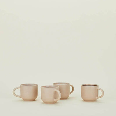Coming in a set of 4, these mugs are pragmatic and elegant; that HNY sweet spot. Sitting comfortably in the hand and makes a just-right morning companion, these mugs have a  soft rippling throughout and a slight foot for a hand thrown feeling (without the hand thrown price tag)