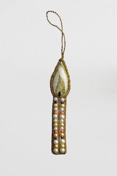 There are 8 different beaded candles and 2 elegant beaded bows: