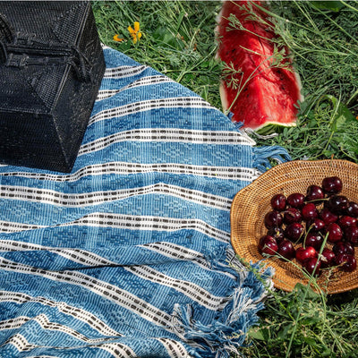 This relaxed cotton throw blanket is handwoven and hand-dyed naturally using indigo. It is brought forward by our artisan partners in Bali, who are purveyors of slow production and natural dye techniques.