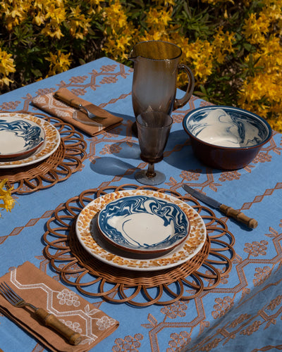 Handcrafted in Bulgaria, the Marbre collection brings a rustic elegance to any table setting, with its dreamy marbled pattern. Available in blue, green and brown, the Marbre collection comprises of dinner plates, side plates, large bowls, small bowls, jugs and mugs.