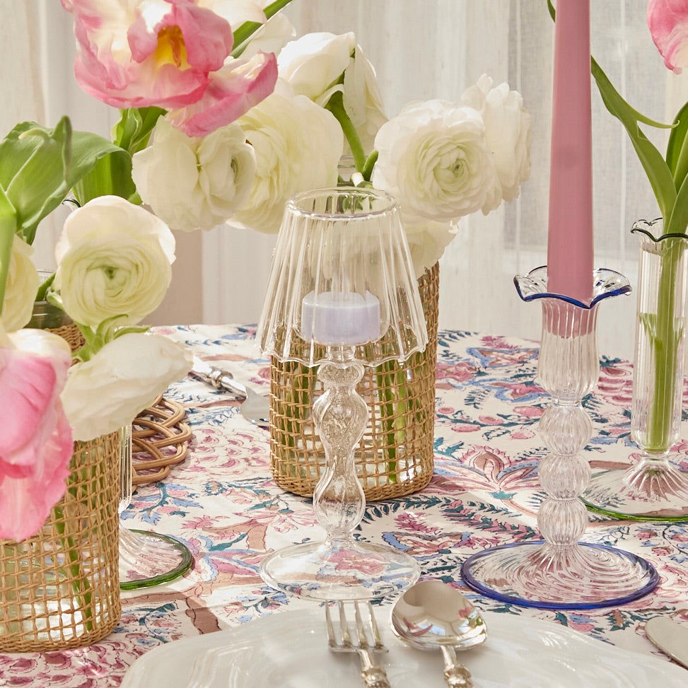 Elegant and charming, these sets of tea light lamps come as a pair, in clear, pale blue, pink or amber.  They give off a gentle light and work well both inside or outside in the garden or on the beach.