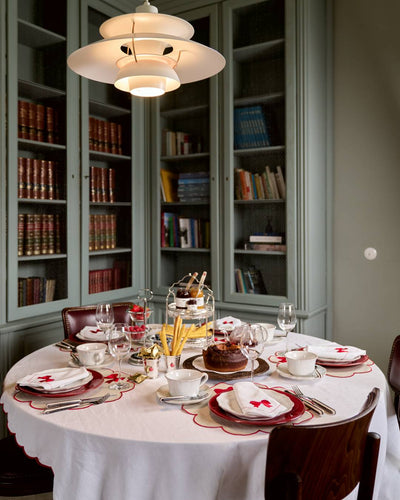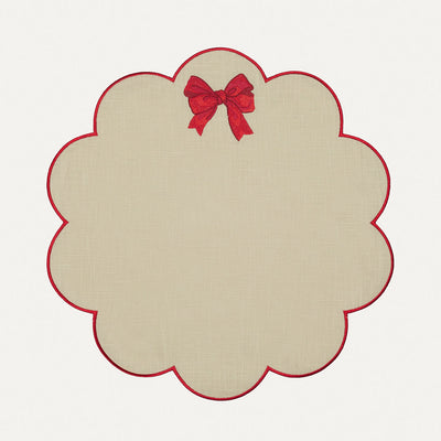 Add a festive and elegant touch to your table with the Lili Placemat. Featuring a sophisticated red border and a delicate embroidered bow at the top, this placemat is perfect for Christmas celebrations. Made from a premium blend of linen and cotton, its design combines charm and quality, making it ideal for special occasions.