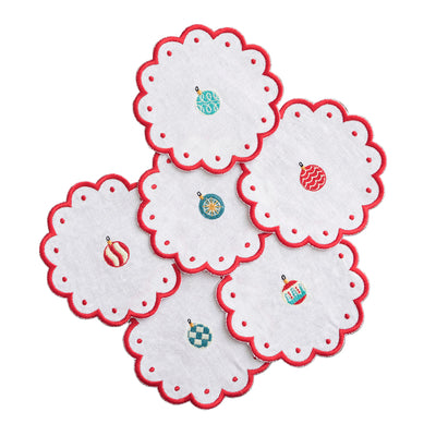 Set of 6 linen cocktail napkins with a Christmas theme.