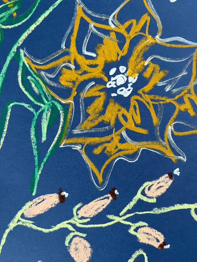 Original art piece created by Swedish artist Cina Rosén. Carefully crafted using pastel crayon on heavy weight 185g paper. Each "Blomma" piece is carefully composed in terms of colour palette and composition, and is therefore unique.