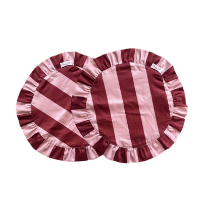 Let lady Darcy set the tone for your most memorable gatherings! Uplift your dining experience with the Darcy placemats, a graceful blend of soft pink and deep red stripes. Crafted from a light premium cotton for a smooth finish and effortless drape.  100% cotton Sold as set of 2