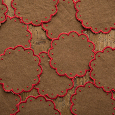 Set of 12 Wavy Cocktail Napkins with Dots - Brown / Red