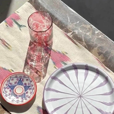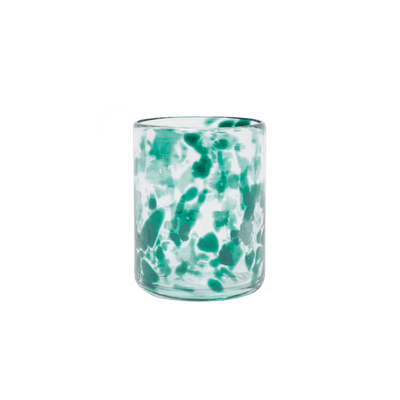 The spotted glass made from recycled glass, perfect for any drink you may desire.