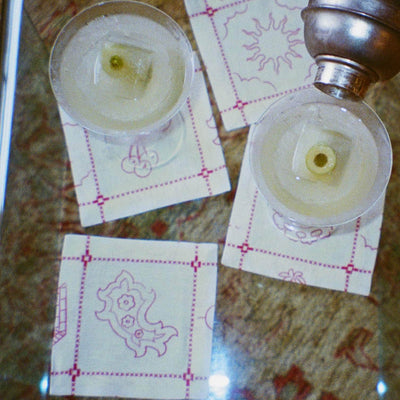 These printed cocktail napkins come as a set of 4. In Cherry Flips' mission to tread as lightly as possible they make these cocktail napkins using any of the spare linen fabric they may have left over from Cherry Flips' table cloths, making each set unique.