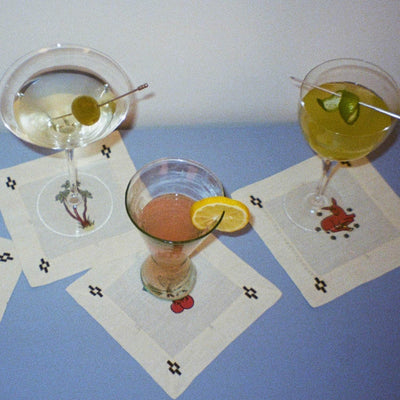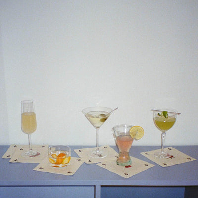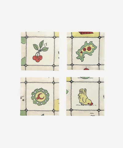 These printed cocktail napkins come as a set of 4. In Cherry Flips' mission to tread as lightly as possible they make these cocktail napkins using any of the spare linen fabric they may have left over from Cherry Flips' table cloths, making each set unique.