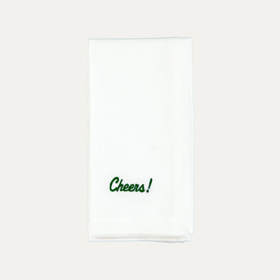 Add a touch of elegance to your meals with our napkin embroidered with the word "Cheers!" in green — perfect for celebrations and special occasions.