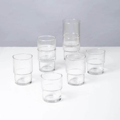 Manufactured in Japan, this glassware set is made with a ripple pattern effect that will add a touch of luxury to any kitchen space. Its stackable design and strengthened rim makes for easy, durable storage.