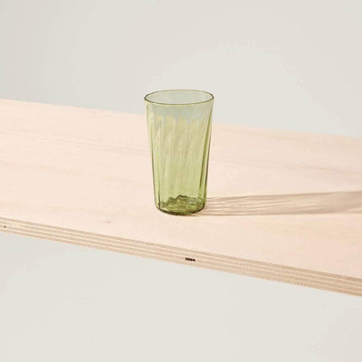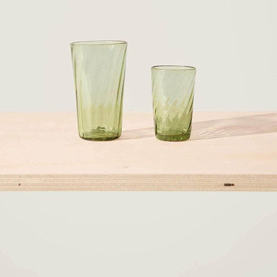 The colour of the glass is called Forest Green, and the shape and thickness of the glasses draws inspiration from the traditional Japanese serving glass.