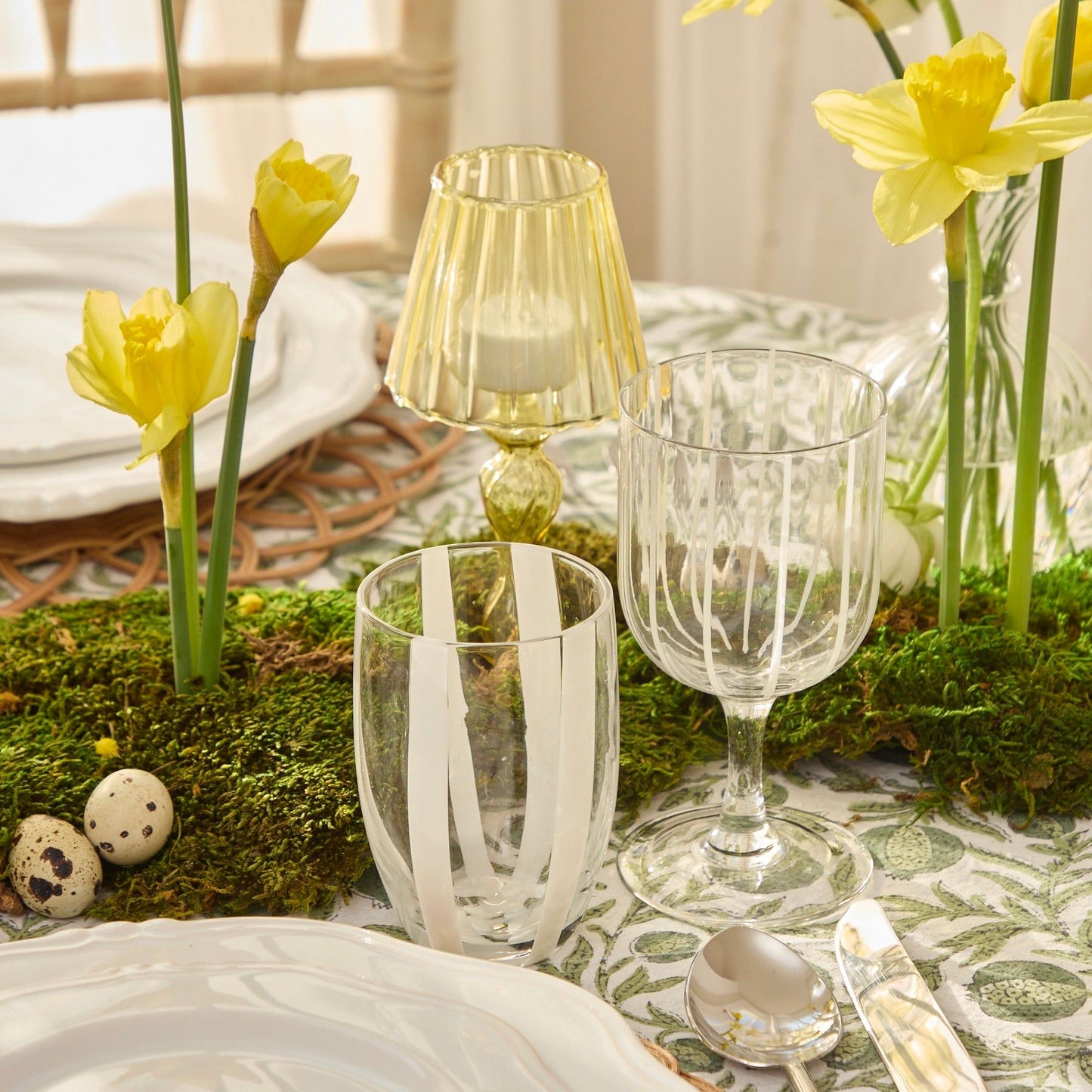 The perfect glass for summer entertaining.  The white stripe goes with every colour scheme, inside and out.  Match with the sturdy white striped glass jug and serve those cocktails soonish!