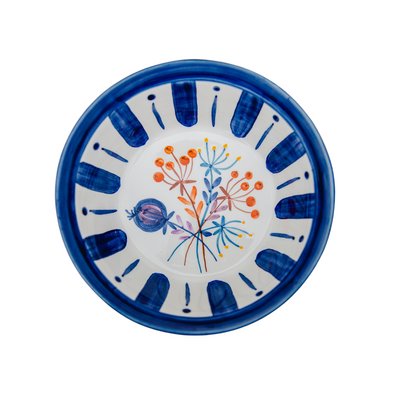 A beautiful faience serving bowl, hand-made and carefully hand-painted by a Portuguese artisan. Each serving bowl is unique, individually painted according to an exclusive design inspired by Portuguese Chitas — a centuries-old printed cotton fabric featuring rich and colourful patterns.