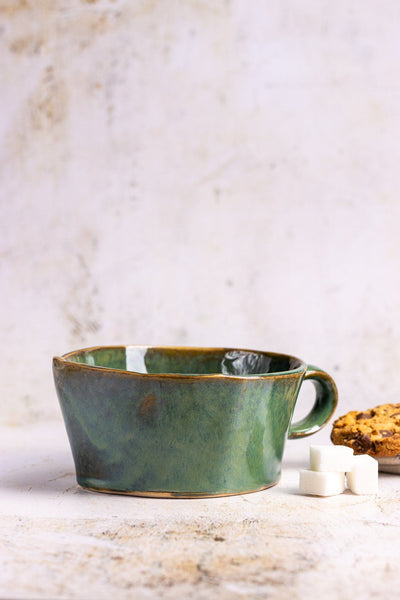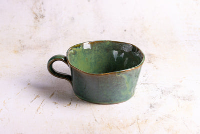 This versatile coffee mug is the perfect vessel for a warming hot chocolate, your caffeine fix, or filled with soup! Made using the finest stoneware and finished in the new green glaze, we have used a combination of hand-building and press moulding techniques to create this practical yet stylish piece, fit for any kitchen.