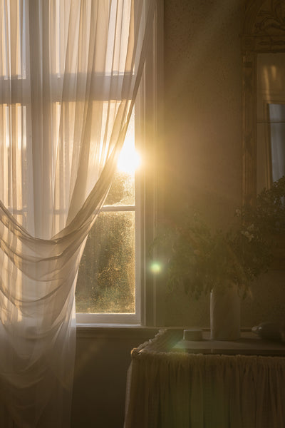 Please note that the color and material of the curtain is perceived to be glossier, darker and more colorful when it is folded in packaging compared to when it is mounted in the window. The reason for this is that the fabric is woven with very thin threads and when the curtain is folded in several layers, the color and material look different. The curtain is like a cloud in the window and creates an ethereal light in the room. The true color is revealed when the curtain is hung up.