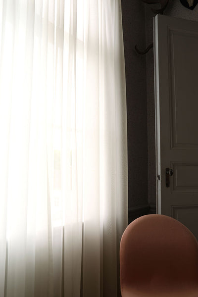 Classic wide hotel curtain that fits both ordinary windows and large window sections. The sheer curtain is sewn with curtain tape and drapes beautifully allowing the light to filter in. The curtain has a tailored look with classic invisible side hems and a double folded hem at the bottom. 4-finger hooks are included. Finger hook suspension fits all rails with slides and also standard curtain rods with curtain rings. 4-finger hook is used to create beautiful finger folds in the curtain that give a well-tailored impression and allow the curtain to drape well.