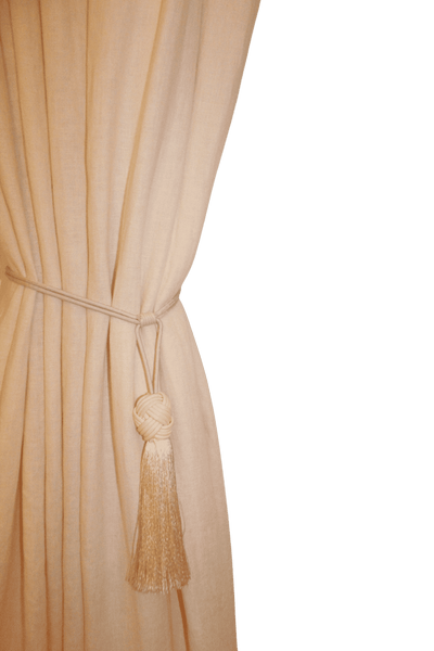 Curtains pulled back to perfection. A chic silky tie back in champagne, the perfect pairing to our full length sheers.