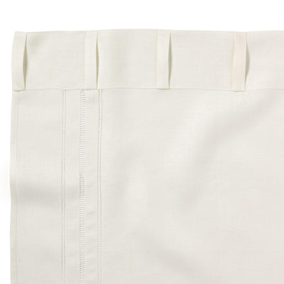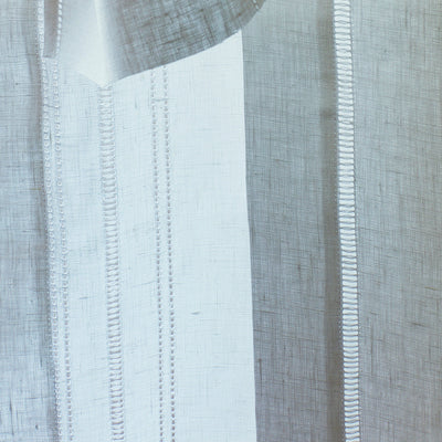 Off white linen with one vertical set of Hem & Ladder stitch drawn thread work down lead edge.